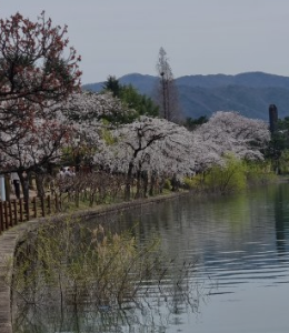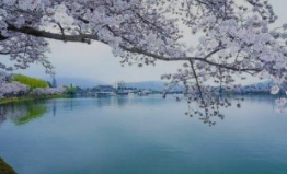 - 해 질 무렵이면 호수에 반사된 벚꽃과 노을이 장관을 이루죠.