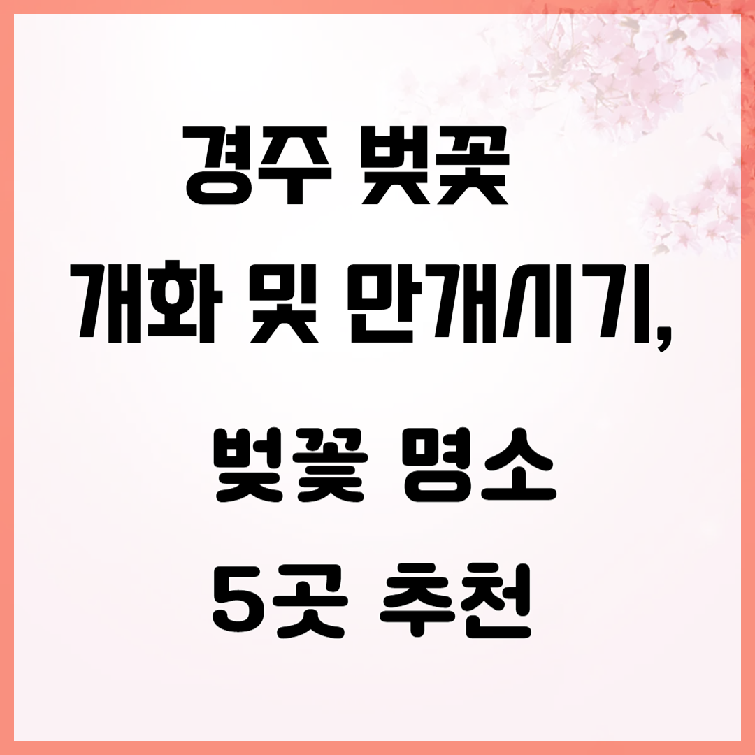 벚꽃 시즌이 다가오면 어디로 떠나야 할지 고민되죠? 그럴 땐 망설이지 말고 경주로 떠나세요! 역사와 자연이 어우러진 경주는 벚꽃이 필 때 더욱 황홀한 분위기를 자랑하는 곳이에요. 오늘은 경주의 벚꽃 개화 및 만개시기, 그리고 놓치면 아쉬운 경주 벚꽃 명소 5곳을 알려드릴게요!